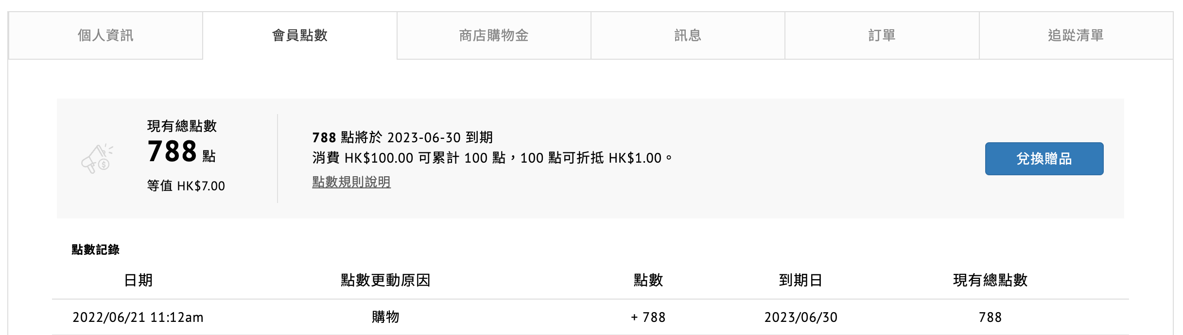 4. 利用點數換取優惠商品/購物金(100點數=HKD$1)